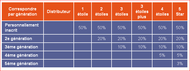 Les distributeurs et les leaders 1 étoiles se qualifient automatiquement pour se faire payer sur les 12 niveaux dans leur matrice. Les leaders 2 étoiles se qualifient pour être payé sur 13 niveaux dans leur matrice. Et les leaders 3 étoiles, 4 étoiles et 5 étoiles se qualifient pour être payé sur les 14 NIVEAUX COMPLET dans leur matrice! Tous les pourcentages sont basés sur les frais mensuels d'adhésion de 9,95 $.